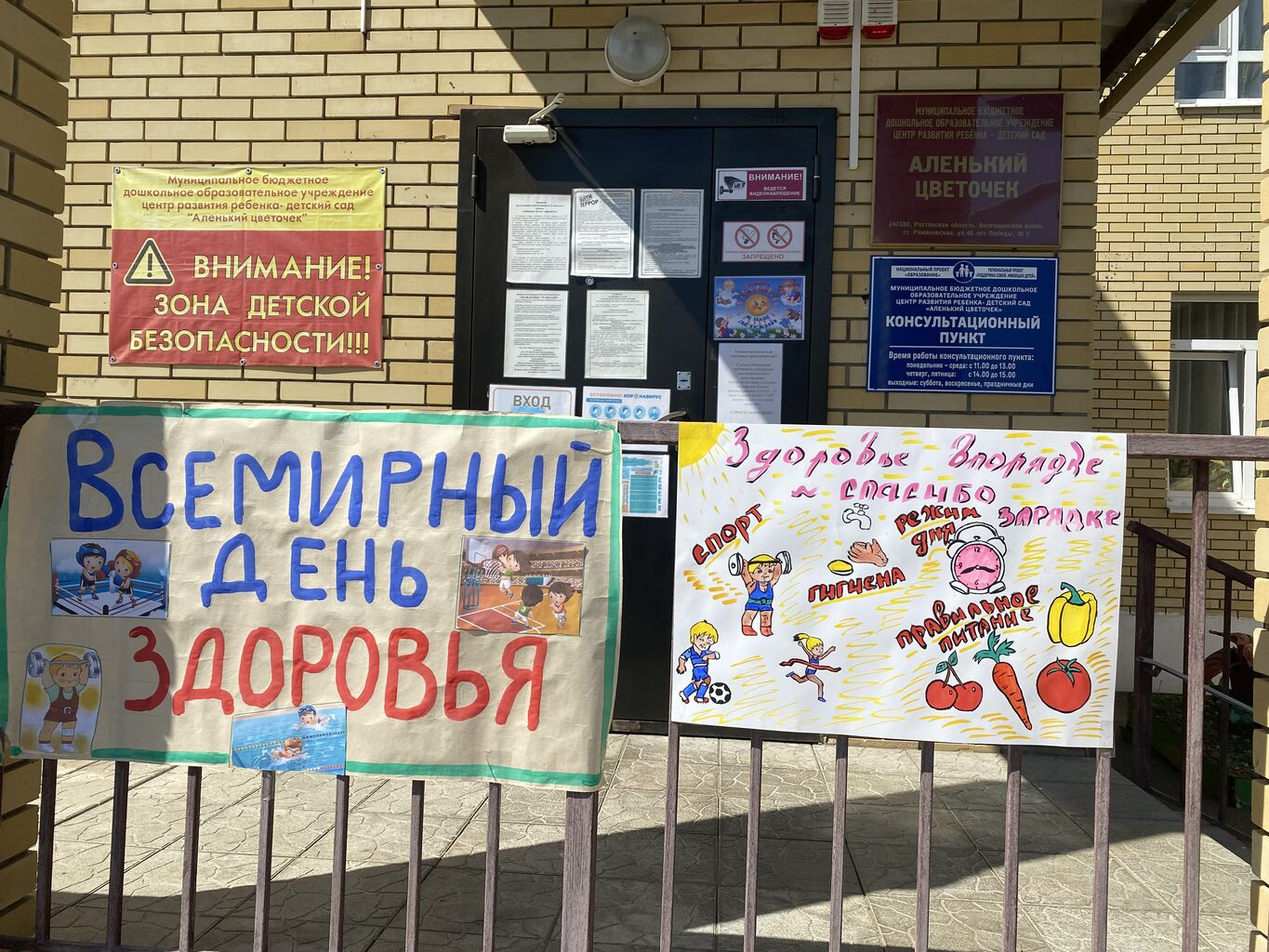 07.04.2022г. в МБДОУ ЦРР - детском саду "Аленький цветочек" был проведен Всемирный день здоровья. В рамках данного мероприятия, совместно с родителями (законными представителями) были подготовлены агитплакаты о здоровом образе жизни, проведено спортивное мероприятие "Здоровье в порядке - спасибо зарядке" с воспитанниками всех возрастных групп. Воспитанники подготовительной группы подготовили памятки для своих родителей о необходимости соблюдения здорового образа жизни!